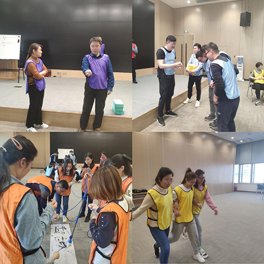拓展訓(xùn)練是激發(fā)團隊活力、加速團隊凝聚的有效方式。本次培訓(xùn)過程中在岱科創(chuàng)城商務(wù)服務(wù)中心組織開展了拓展訓(xùn)練。四小組通過“妙筆生花”、“不倒森林”“鐵人三項”等游戲充分展示了激情,體會到了與隊友齊心協(xié)力,同舟共濟的意義,共同分享了互相協(xié)作帶來的喜悅。