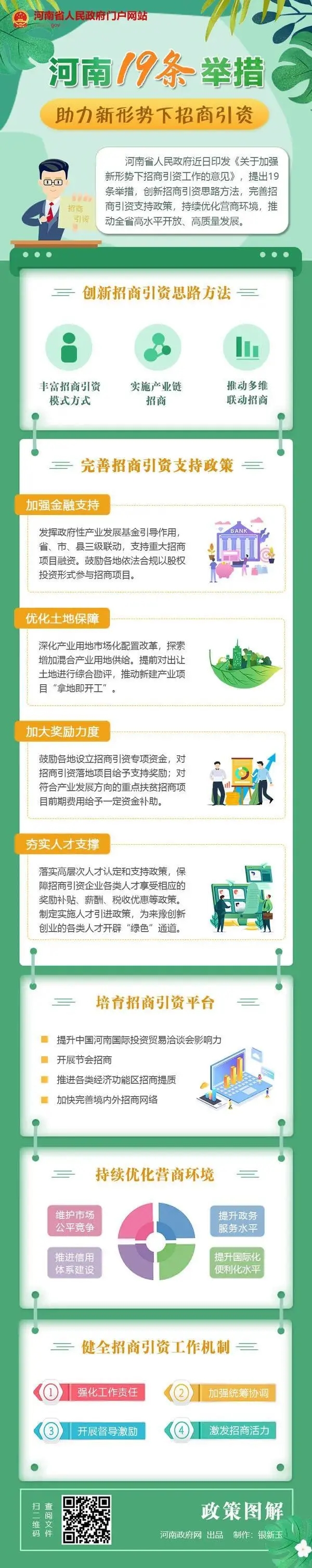 《意見》提出,加強金融支持,發(fā)揮政府性產(chǎn)業(yè)發(fā)展基金引導(dǎo)作用,省、市、縣三級聯(lián)動,支持重大招商項目融資。優(yōu)化土地保障,深化產(chǎn)業(yè)用地市場化配置改革,探索增加混合產(chǎn)業(yè)用地供給,推動新建產(chǎn)業(yè)項目“拿地即開工”。加大獎勵力度,鼓勵各地設(shè)立招商引資專項資金,對招商引資落地項目給予不同等次的支持獎勵;對符合產(chǎn)業(yè)發(fā)展方向的重點扶貧招商項目前期費用給予一定資金補助。夯實人才支撐,落實高層次人才認(rèn)定和支持政策,保障招商引資企業(yè)各類人才享受相應(yīng)的獎勵補貼、薪酬、稅收優(yōu)惠等政策,制定實施人才引進政策,為來豫創(chuàng)新創(chuàng)業(yè)的各類人才開辟“綠色”通道。