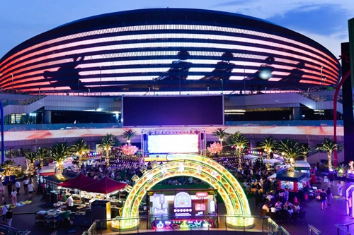 熠熠星光耀向夜空,呼應(yīng)著霓虹閃爍的奧體中心,飄散的煙火氣和美食的香氣充斥著整個(gè)下沉空間,舞臺(tái)音樂節(jié)奏歡快、火爆酷炫,在霓虹交錯(cuò)的空間里,一天的時(shí)間仿佛被夜市拉長(zhǎng),這是年輕人帶給這座城市的無(wú)限活力。
