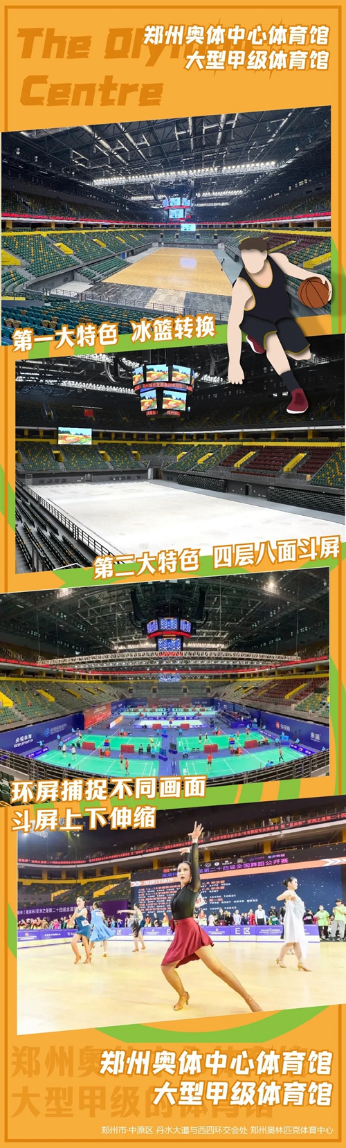 奧體中心體育館作為大型甲級(jí)體育館,空間使用靈活,場(chǎng)地利用率高。目前已經(jīng)舉辦了2019年世界乒聯(lián)巡回賽總決賽、2020年世界乒聯(lián)巡回賽總決賽、2019年全國羽毛球單項(xiàng)冠軍賽、2021年全國羽毛球冠軍賽暨第十四屆全運(yùn)會(huì)羽毛球項(xiàng)目資格賽、2022年河南省第一屆職業(yè)技能大賽、2023永慶安瀾德云社岳云鵬·孫越相聲專場(chǎng)等知名賽事活動(dòng)。下半年,將有更多知名演藝、賽事活動(dòng)在奧體中心體育館舉辦。主館西側(cè)為總面積約2100平方米的籃球熱身館,目前已經(jīng)舉辦過籃球、跆拳道、羽毛球等體育賽事,以及企業(yè)展銷、社區(qū)聯(lián)誼、動(dòng)漫展等活動(dòng);北側(cè)為冰上運(yùn)動(dòng)中心,擁有1800平方米國際標(biāo)準(zhǔn)冰,致力于為中部地區(qū)提供從啟蒙到精英級(jí)的系統(tǒng)化冰上運(yùn)動(dòng)培訓(xùn)。