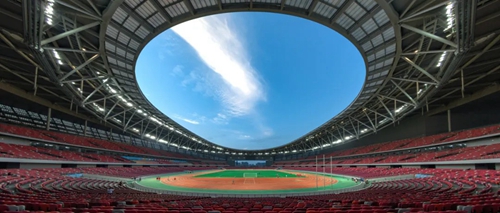 鄭州奧體中心體育場采用了“三角形巨型桁架+立面桁架+網(wǎng)架+大開口車輻式索承網(wǎng)格”的組合結(jié)構(gòu)體系設(shè)計。82米跨三角形巨型桁架,重量達(dá)1300噸,為同類之最;大開口車輻式索承網(wǎng)格結(jié)構(gòu)為全球最大懸挑,設(shè)計最大懸挑54.1米,其中,環(huán)向密封拉索直徑為130毫米、單個索夾重達(dá)6.5噸,均為國內(nèi)之最。項目整體形成的《鄭州奧體中心綜合建造技術(shù)》,成果總體達(dá)到國際先進(jìn)水平。