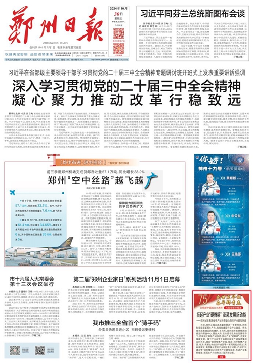 黨的二十屆三中全會(huì)提出,高質(zhì)量發(fā)展是全面建設(shè)社會(huì)主義現(xiàn)代化國家的首要任務(wù)。當(dāng)前,鄭州正錨定高質(zhì)量發(fā)展這一首要任務(wù),因地制宜發(fā)展新質(zhì)生產(chǎn)力,加快構(gòu)建現(xiàn)代化產(chǎn)業(yè)體系。