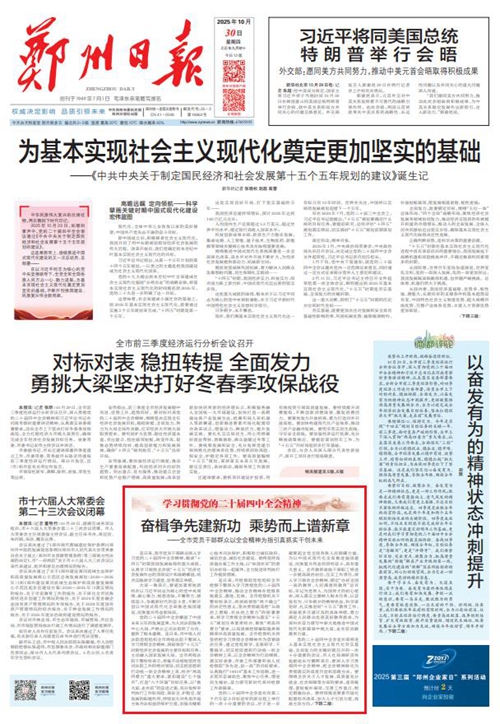 黨的二十屆四中全會擘畫了中國式現(xiàn)代化建設的宏偉藍圖,為新時代新征程國有企業(yè)改革發(fā)展指明前進方向、提供根本遵循,鄭州城發(fā)集團廣大黨員干部群眾深受鼓舞、倍感振奮。近日,《鄭州日報》《鄭州晚報》開設了【學習貫徹黨的二十屆四中全會精神】專欄,2025年10月30日,報道了鄭州城發(fā)集團深入學習貫徹落實黨的二十屆四中全會精神,以全會精神為指引真抓實干創(chuàng)未來。