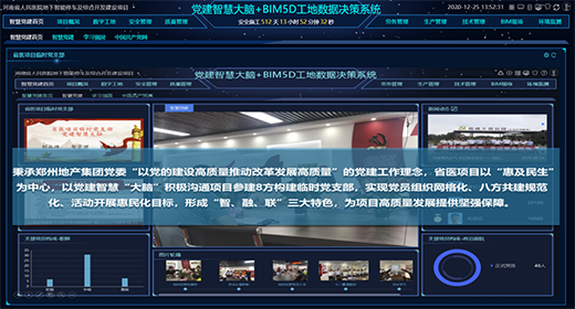 鄭州地產(chǎn)集團(tuán)投資管理有限公司以河南省人民醫(yī)院地下智能停車及綜合開發(fā)建設(shè)項目作為BIM技術(shù)應(yīng)用試點(diǎn)項目,以黨建智慧大腦作為引領(lǐng),通過BIM5D技術(shù),大大提升了項目部對現(xiàn)場安全文明標(biāo)準(zhǔn)化施工、過程質(zhì)量控制、圖紙深化、施工方案及技術(shù)交底、進(jìn)度工期控制、成本管控等多方面的管理水平,不僅保障施工安全,更能保障建筑質(zhì)量。