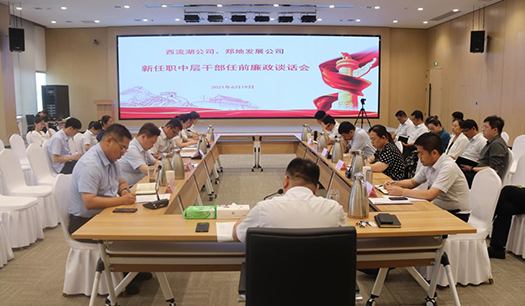 6月19日下午,西流湖公司、鄭地發(fā)展公司召開新任中層干部任前廉政談話會。公司領(lǐng)導(dǎo)班子成員、中層正副職人員及新任職中層干部人員共計二十余人參加,會議由公司黨支部書記、董事長、總經(jīng)理吉獻亮主持。會議要求新任中層干部要認清定位、做好表率,要對下負責(zé)、嚴格管理,以強烈的事業(yè)心和主人翁姿態(tài),主動扛大梁、挑重擔(dān)、負重責(zé)、做貢獻;要敢于擔(dān)當(dāng)作為,勇于攻堅克難,要以踏石留印、抓鐵有痕的勁頭理清思路、突出重點、轉(zhuǎn)變作風(fēng)、創(chuàng)新機制,以主動擔(dān)當(dāng)、奮發(fā)有為的姿態(tài)扛起助力城市建設(shè)發(fā)展的大旗,為鄭州國家中心城市建設(shè)增光添彩。