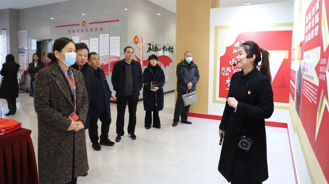 指導(dǎo)組一行參觀了金岱科創(chuàng)城商務(wù)服務(wù)中心,詳細了解了金岱科創(chuàng)城核心板塊、商代王城遺址核心板塊及小李莊火車站核心板塊的規(guī)劃建設(shè)情況。隨后實地觀摩了“我為群眾辦實事”黨建主題展廳,聽取了黨建班組在清廉項目建設(shè)、黨史學(xué)習(xí)教育及“我為群眾辦實事”系列活動等方面的開展情況,并對金岱科創(chuàng)城高標準推進項目建設(shè)、高水平完善配套設(shè)施、高品質(zhì)快項目招商給予充分肯定。